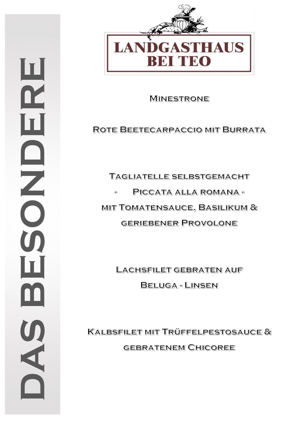 Im Landgasthaus bei Teo vereinen wir die italienische Kochkunst mit einem familiären Ambiente. Unser Restaurant bietet nicht nur köstliche Gerichte, sondern auch einen herrlichen Garten, in dem Sie entspannen können. Ob für ein romantisches Dinner oder eine Feier mit Freunden und Familie, wir sorgen dafür, dass Ihr Besuch unvergesslich wird!